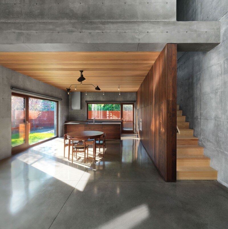 Сочетание тёмного дерева со светлыми стенами создаёт эффектный и современный контраст.