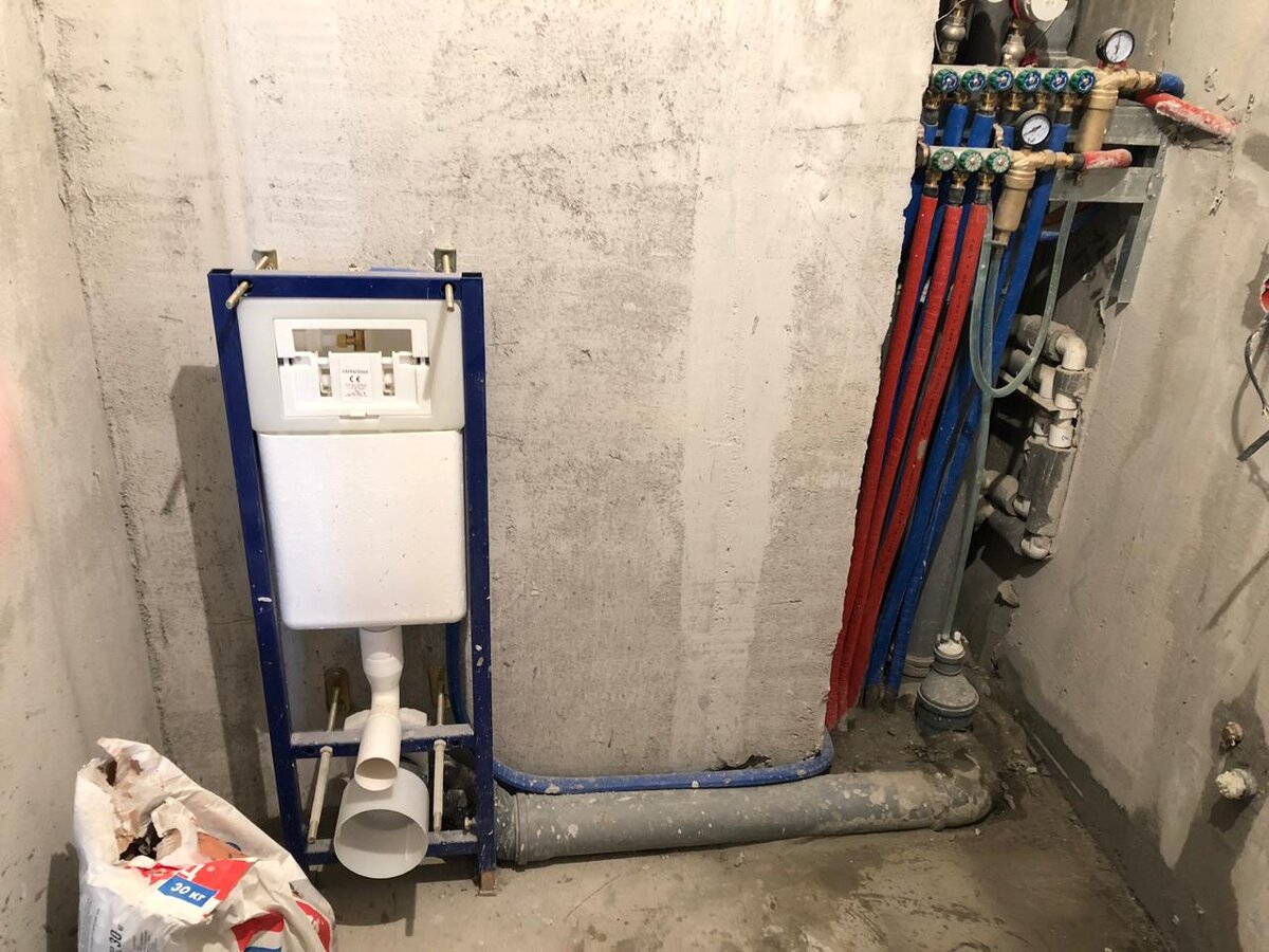 Коллектор установили с вентилем на каждую точку: краны, стиральная машина, унитаз, кухонная раковина и посудомоечная машина (ПММ). Подводку для ПММ сделали сразу — это решение значительно экономит время в будущем.