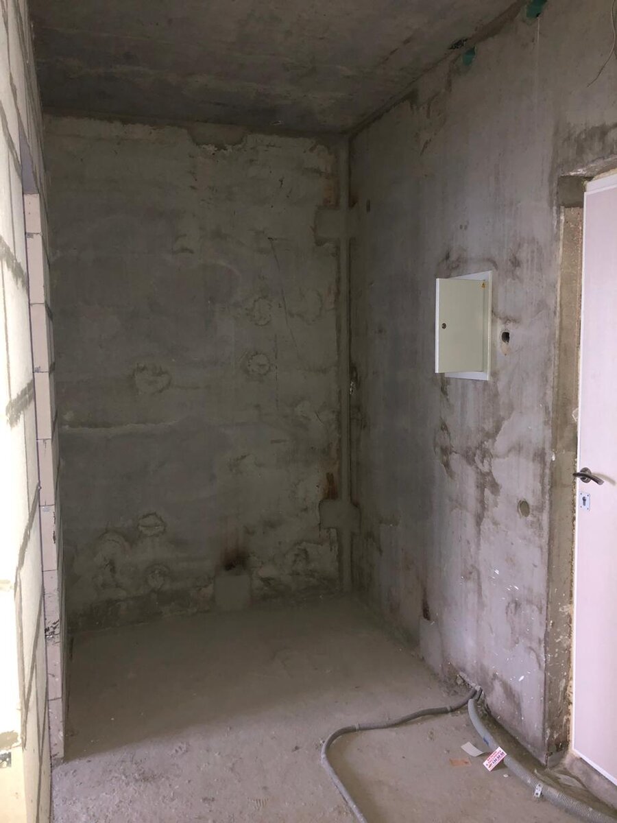 На фото: исходное состояние коридора с электрощитом и заземлением — так сдает квартиру застройщик.