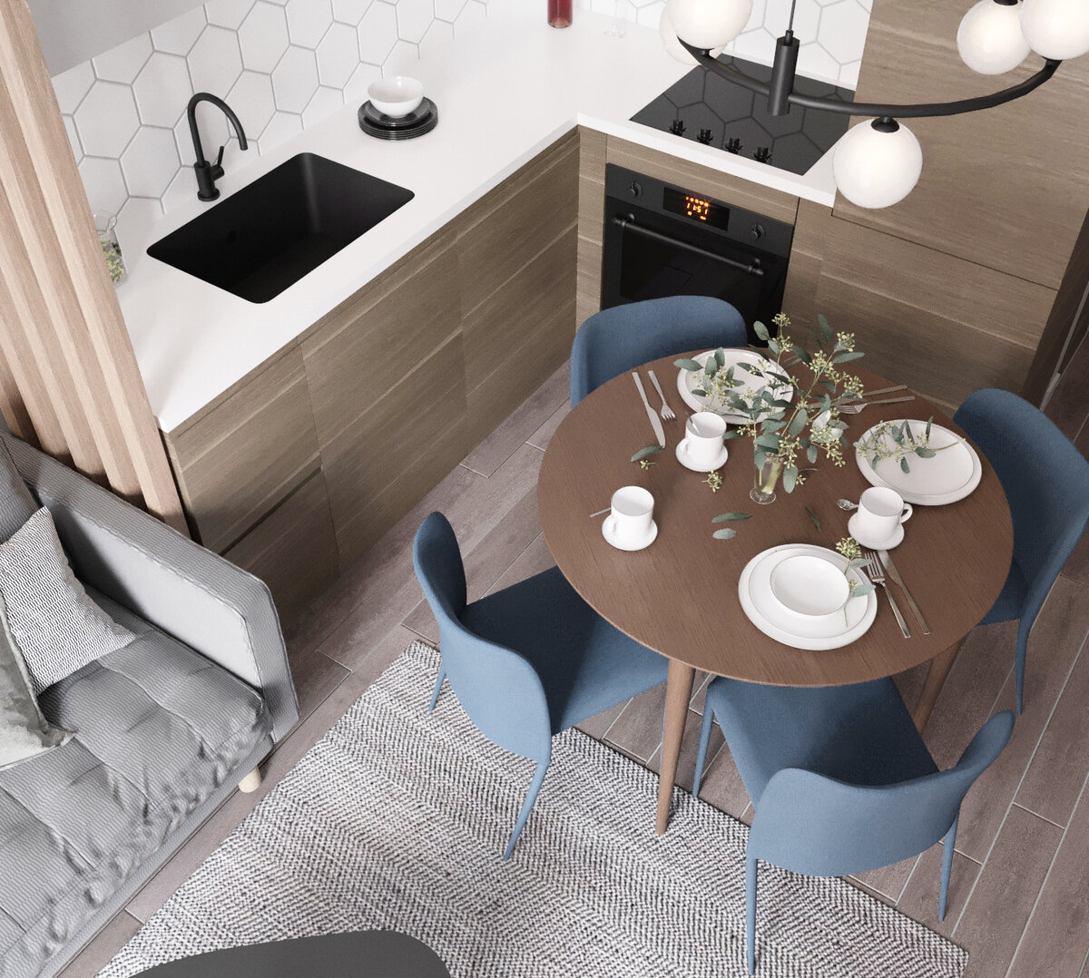 Если бюджет ограничен, отличным решением станет технический дизайн-проект. Это комплект рабочих чертежей для строителей: планы стен, полов, потолков, размещения розеток и освещения. Часто в такой проект включают список необходимых чистовых материалов (плитка, ламинат, плинтусы) и сантехники. Этого достаточно, чтобы начать качественный ремонт. Мебель, текстиль и декор клиент подбирает сам, но уже имея на руках грамотную планировку с расставленной мебелью. Такой проект готовится быстро, например, в нашей студии — около трех недель.