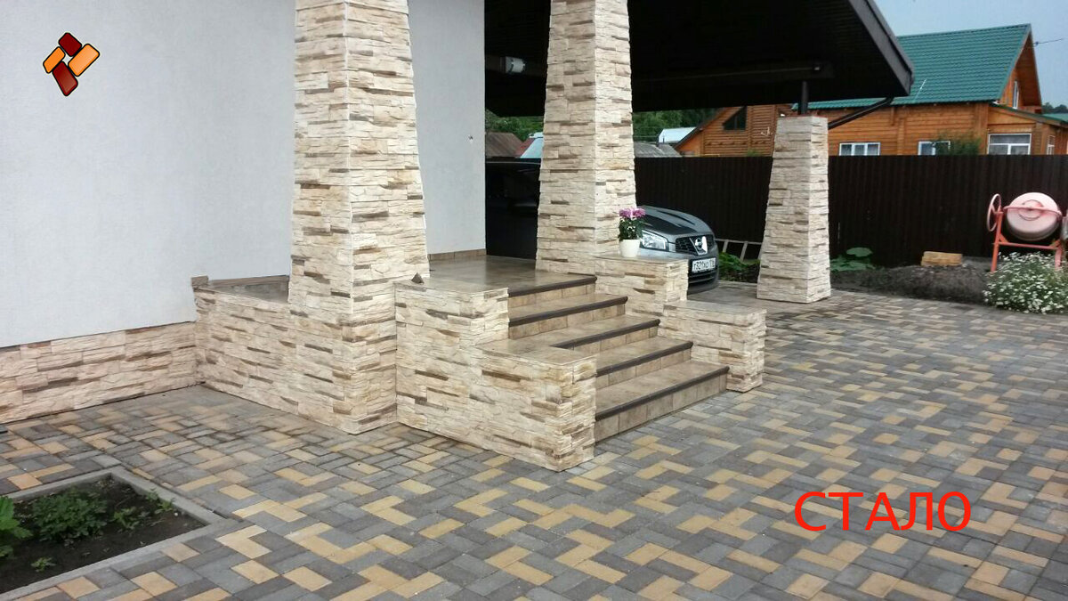 И напоследок, вот крылечко, которое было унылым и ободранным, пока его не облагородили декоративным камнем "Выветренный каньон" производства компании "Арт-Камень" в г.Казань (то есть, моей).