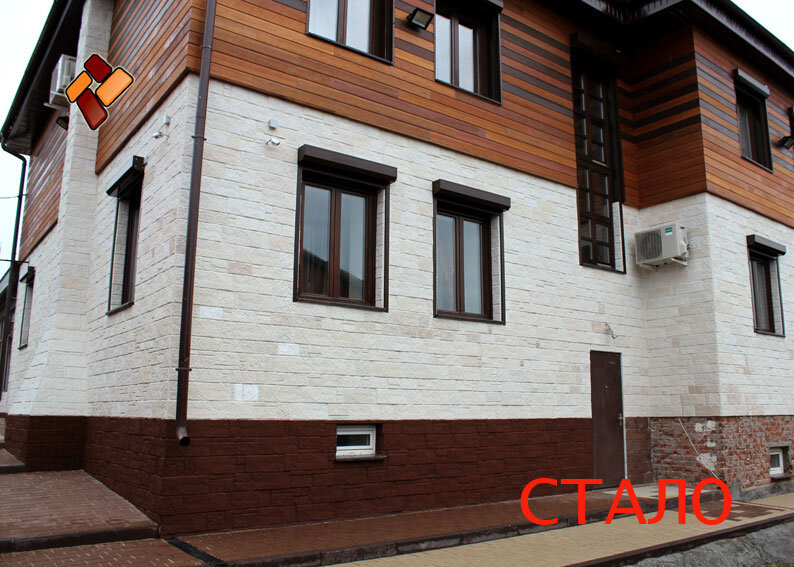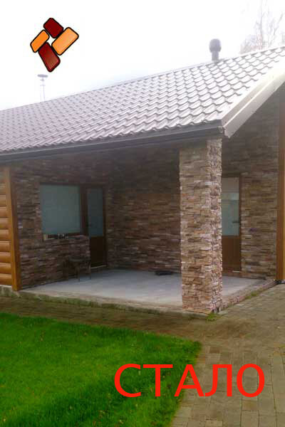 Получается этакий средиземноморский стиль.Еще есть вот такой камень, который преобразил обычный деревенский домик в сказочный теремок - "Северный склон" артикул 01. Этот камень настолько популярен, что я планирую написать про него отдельную статью и показать, насколько разные объекты могут быть отделаны им снаружи и внутри.