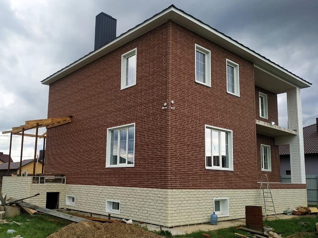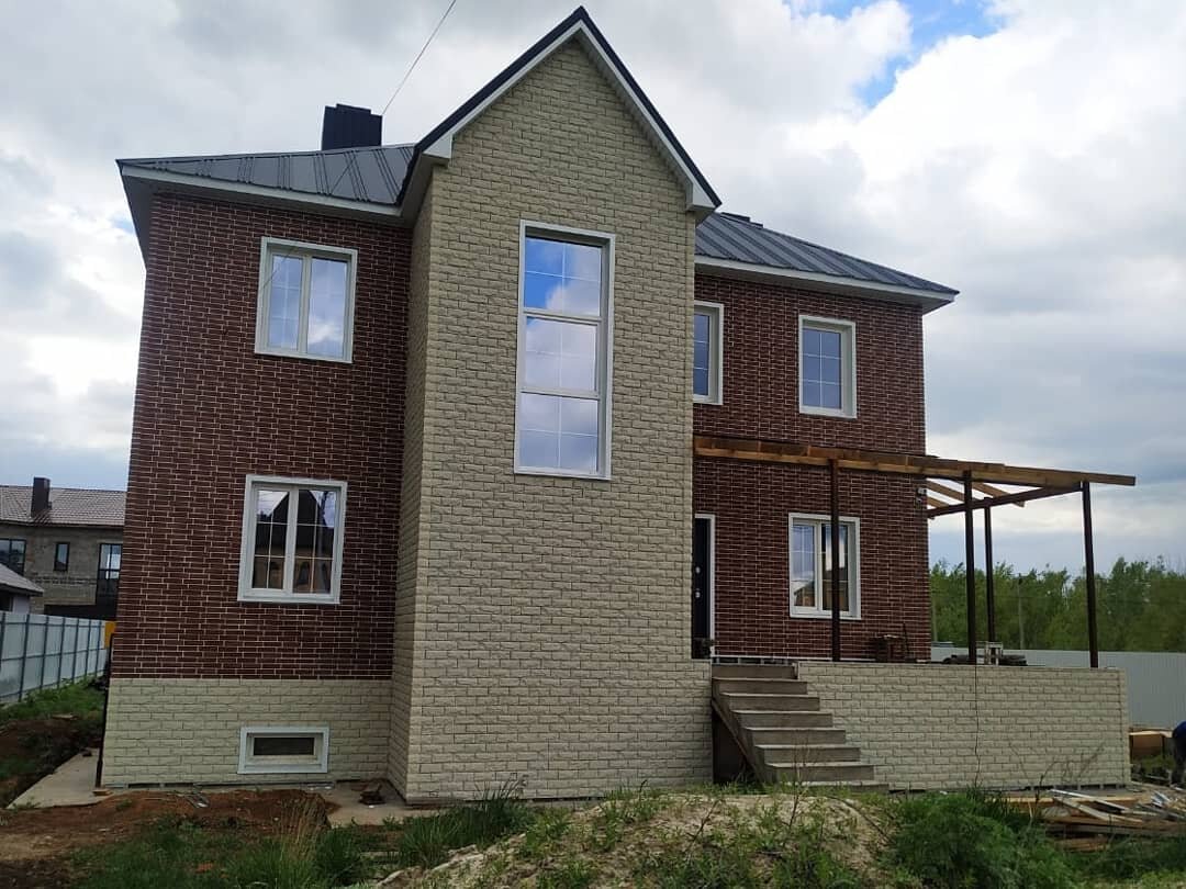 В рамках проекта по обновлению экстерьера дома была выполнена комплексная отделка с применением цокольного сайдинга от бренда Альта-Профиль. Работы включали в себя не только финишную облицовку, но и подготовительные этапы для обеспечения долговечности и энергоэффективности. Фасад был утеплен с использованием стекловолокна, что создает надежный барьер для холода. Для защиты утеплителя и конструкций от влаги была смонтирована гидро- и пароизоляция. Все материалы закреплены на усиленный металлический каркас, обеспечивающий прочность и устойчивость всей конструкции.