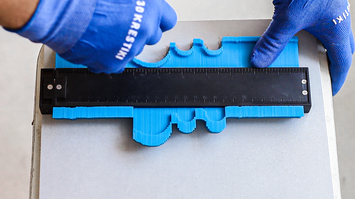 - Шаг 2: Перенос. Аккуратно переместите инструмент с «запомненной» формой на заготовку — плитку, ламинат, панель.