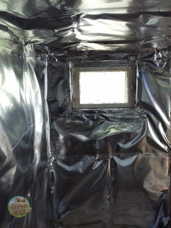 Поверх утеплителя был закреплен слой фольги, а все стыки тщательно проклеены алюминиевым скотчем. Эта технология позволила создать эффект «термоса», предотвращающий утечку тепла и пара.