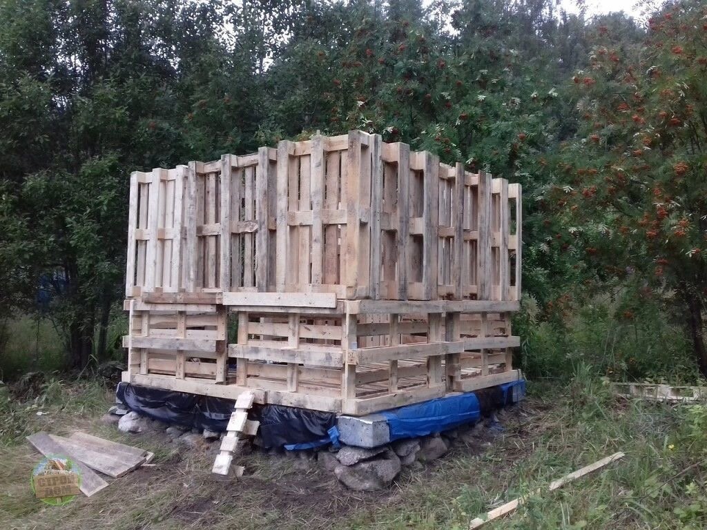 Возведение каркаса из поддонов