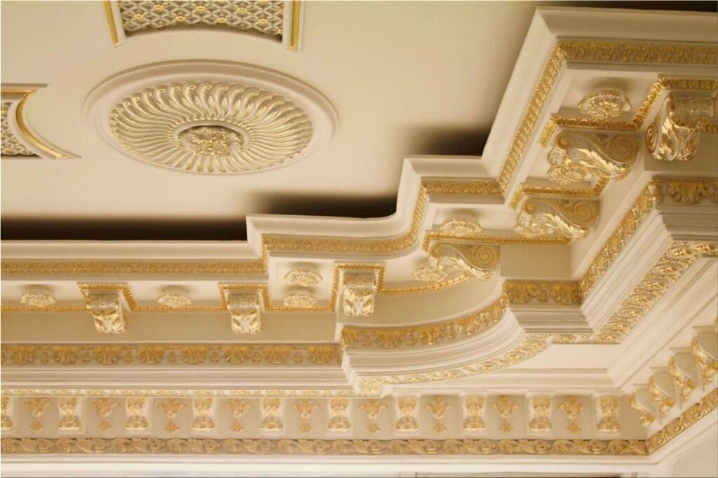 Этот материал также хорош тем, что его внешний вид можно изменить, если нанести краску. Покрасочные мероприятия в этом случае выполняют, используя обыкновенную кисть. Валик здесь обычно неуместен, ведь лепнина имеет сложные очертания. Чтобы прокрасить ее на всех участках, без узкой кисти точно не обойтись.
