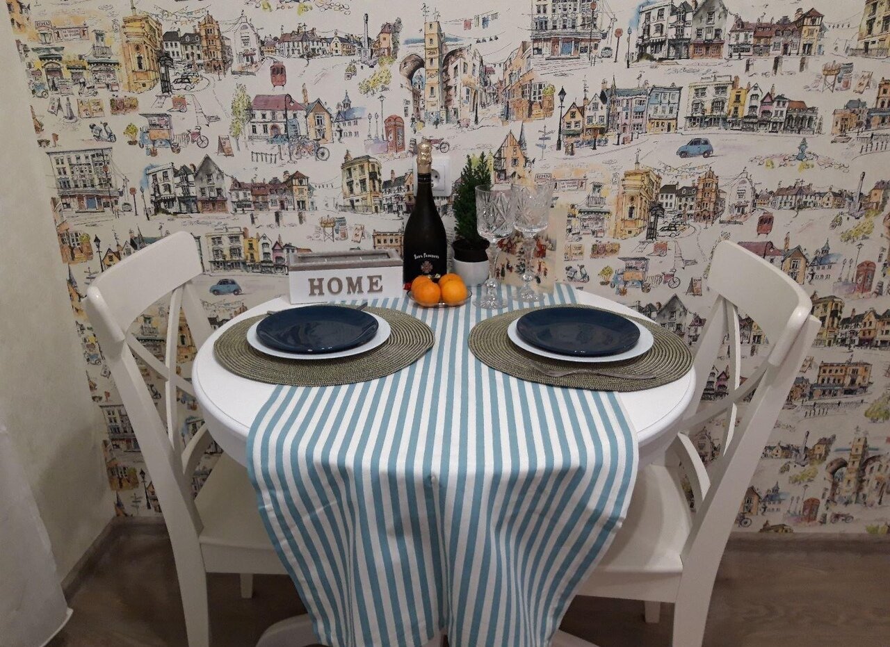 Ключевым моментом в преображении кухни стал выбор обоев. Мы остановились на варианте, который сразу задал настроение всему пространству и определил будущую цветовую палитру. Вдохновением послужила средиземноморская тематика — мы решили, что кухня должна быть светлой, свежей и ассоциироваться с морским побережьем.