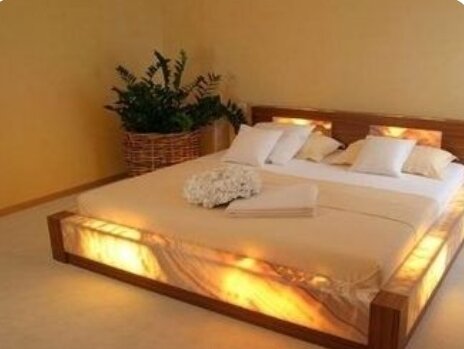- Подсветка в мебели и других элементах интерьера. Любые дизайнерские идеи, предполагающие наличие внутренней подсветки, можно воплотить в жизнь с помощью гибкого камня.