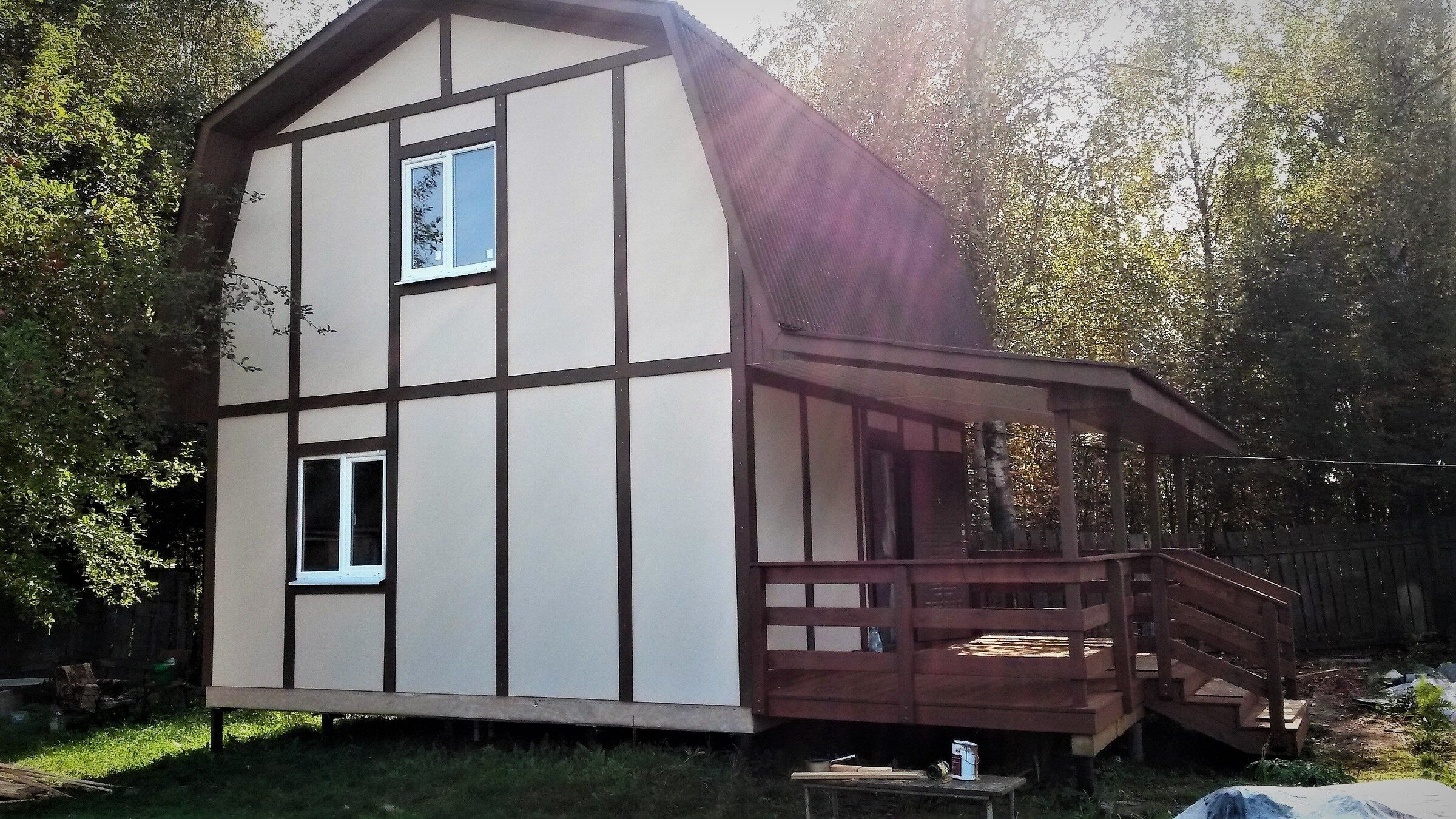 История началась с решения полностью преобразить дачный участок. Вместо небольшого, но уютного старого домика владельцы решили возвести новый каркасный дом, и справились с этой масштабной задачей всего за одно лето, работая своими силами.