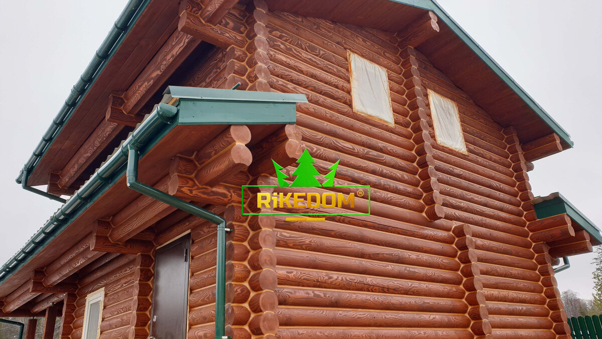 8. Завершение фасадных работ: герметизация торцов бревен и оставшихся трещин, при необходимости – нанесение дополнительного слоя фасадной краски.