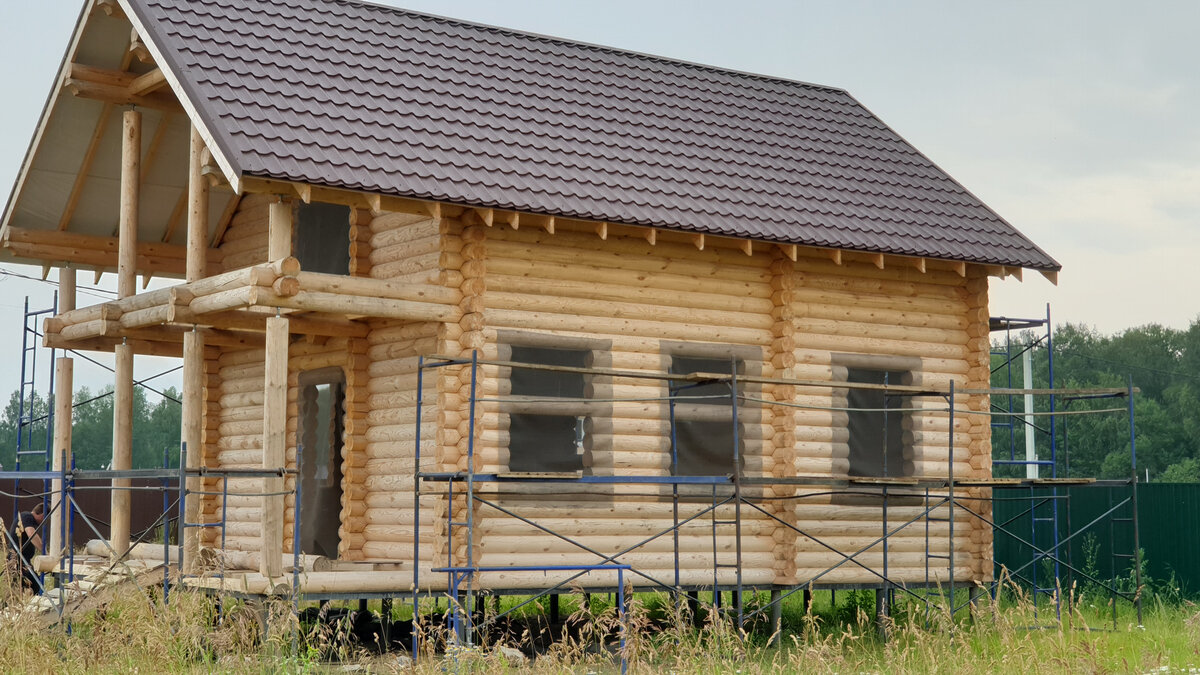 Сруб, прошедший первый этап усадочного периода и готовящийся к отделке.