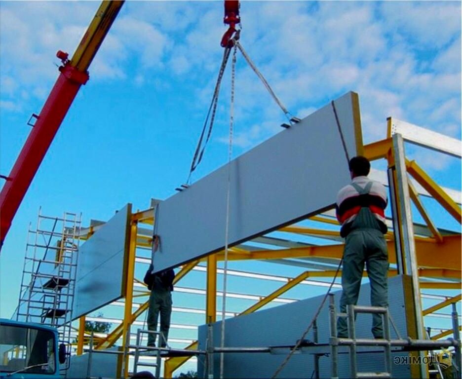 1. Ускорение и упрощение строительства. Как было отмечено выше, с помощью панелей удается возвести стены постройки гораздо быстрее и с минимальными усилиями. Да, для крупных панелей дополнительно требуется строительная техника, но во многих случаях удается обойтись и без нее.