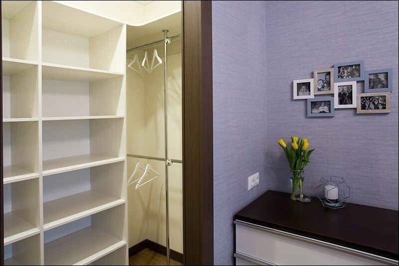 В квартире нашлось место для компактной, но функциональной гардеробной. Теперь все вещи можно аккуратно хранить в одном месте, поддерживая идеальный порядок.