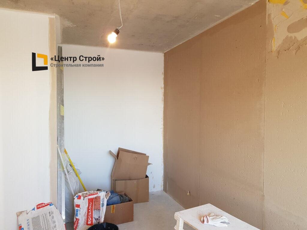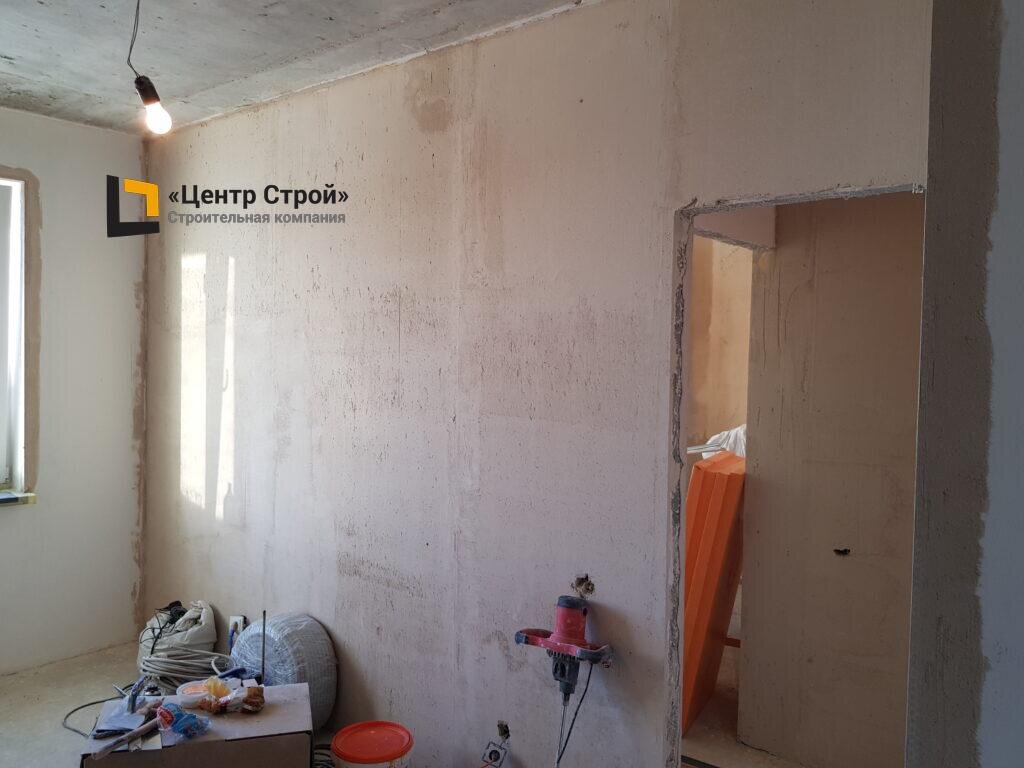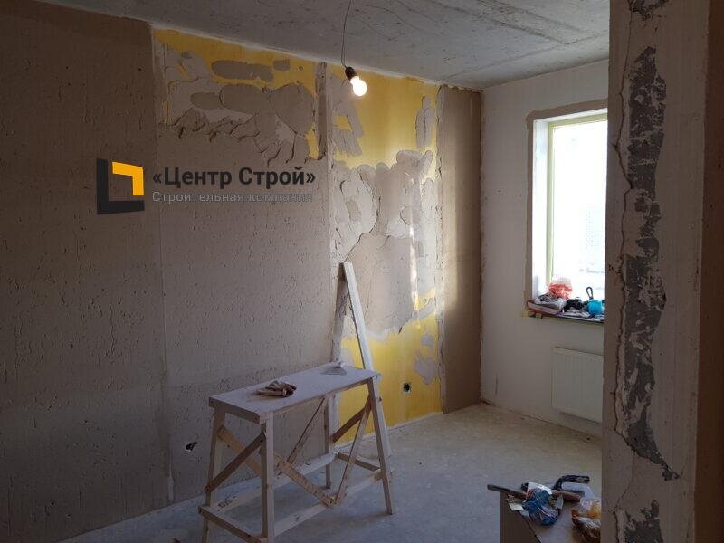 Решение заказчика: Не желая терять полтора месяца и использовать сомнительные материалы от застройщика, клиент доверил нам выполнить выравнивание стен и откосов. Общий срок производства всех работ по объекту был запланирован и составил 46 календарных дней.