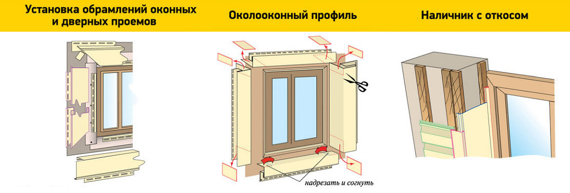 Это обеспечит температурный зазор в 2-9 мм, который необходим при установке данного материала.— Проёмы: околооконный профиль, наличники, откосы