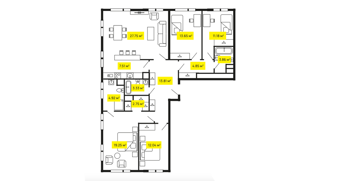 Всего в комплексе представлено 15 типов планировок — от компактных студий (от 38 м²) до просторных четырехкомнатных квартир (до 125 м²). Это позволяет найти идеальный вариант как для молодого специалиста, так и для большой семьи.