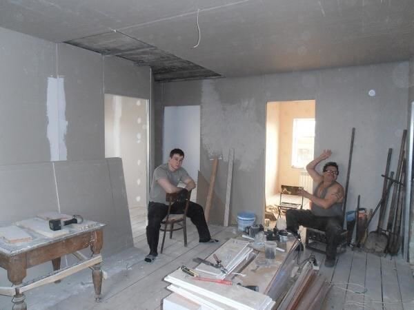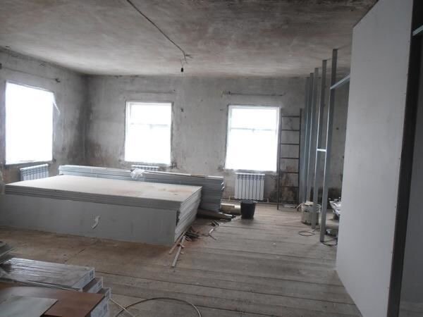 После черновых работ и утепления приступили к планировке и отделке. Для создания комнат сначала собрали каркас из металлического профиля, который затем обшили гипсокартоном, формируя новые перегородки.