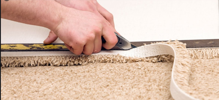Края ковролина традиционно маскируются и слегка прижимаются напольными плинтусами. Непосредственно к полу покрытие фиксируется одним из трёх способов: с помощью клея (наиболее прочное сцепление), на двусторонний монтажный скотч (для небольших площадей) или системой стретчинг с гриппер-рейками (позволяет при необходимости легко демонтировать покрытие).