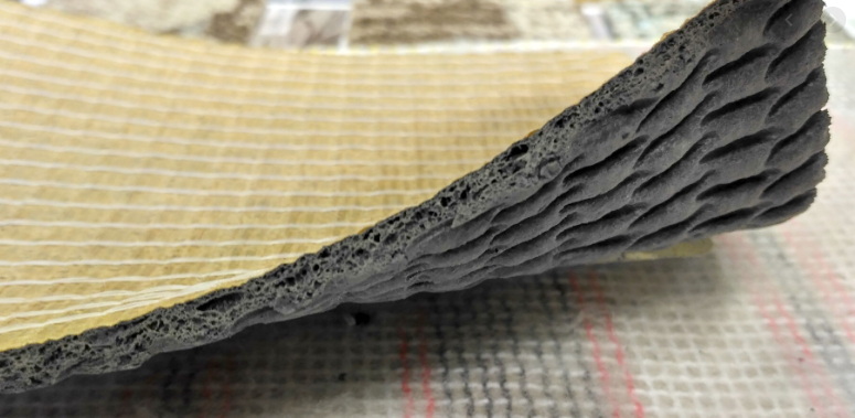 Флокированная основа (ПВХ) — лидер по прочности и стабильности. Часто армируется стекловолокном и дополняется латексным слоем для придания упругости. Универсальна, подходит как для жилых, так и для коммерческих объектов с высокой посещаемостью.