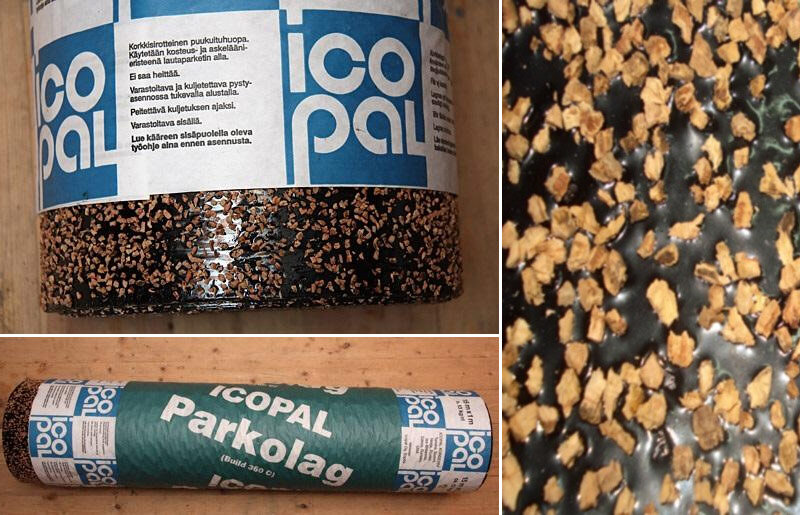 Эта подложка состоит из плотного картона, покрытого слоем битума и пробковой крошкой. Картон обеспечивает скольжение, битум — влагозащиту, а пробка — звукопоглощение и сглаживание неровностей. Однако битум остается битумом, а пробковая крошка уступает по качеству цельному пробковому материалу. Главный минус — многие производители отказывают в гарантии, если вместо стандартной гидроизоляционной пленки используется парколаг.