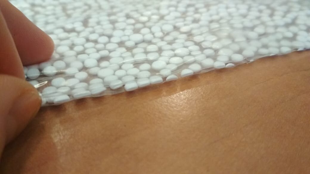 Эта подложка представляет собой полиэтиленовый рукав, заполненный пенопластовыми шариками. Она способна отводить влагу от бетона, предотвращая появление плесени. Однако, как и в случае с парколагом, производители часто отказывают в гарантии при её использовании. Кроме того, пенопластовые шарики легко деформируются под нагрузкой, что снижает звукоизоляцию и выравнивающие свойства.