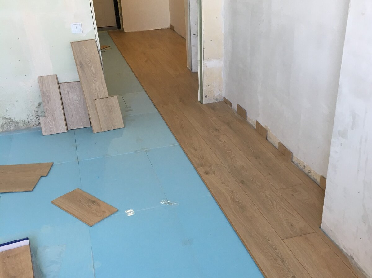 - Если основание имеет незначительные перепады высоты, подложка может частично их скомпенсировать. В таких случаях рекомендуется выбирать более толстые и упругие материалы, например, экструдированный полистирол (ЭППС). Однако важно понимать, что подложка — не альтернатива выравниванию. При серьёзных неровностях (более 2-3 мм на 2 метра) необходима предварительная подготовка основания с помощью стяжки или наливных полов. Укладка ламината на неровный пол приведёт к прогибам, скрипам, расхождению замков и быстрому разрушению покрытия.