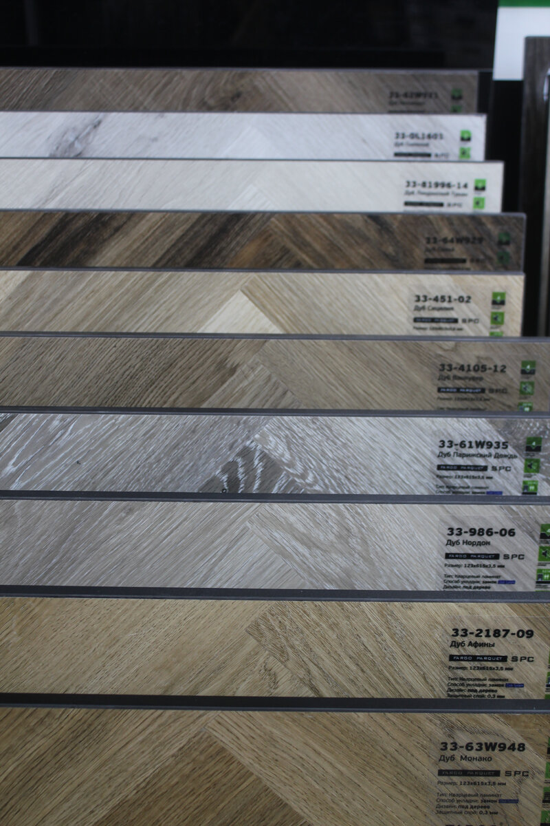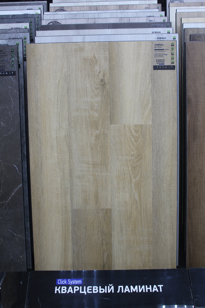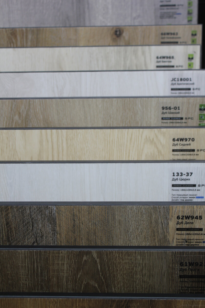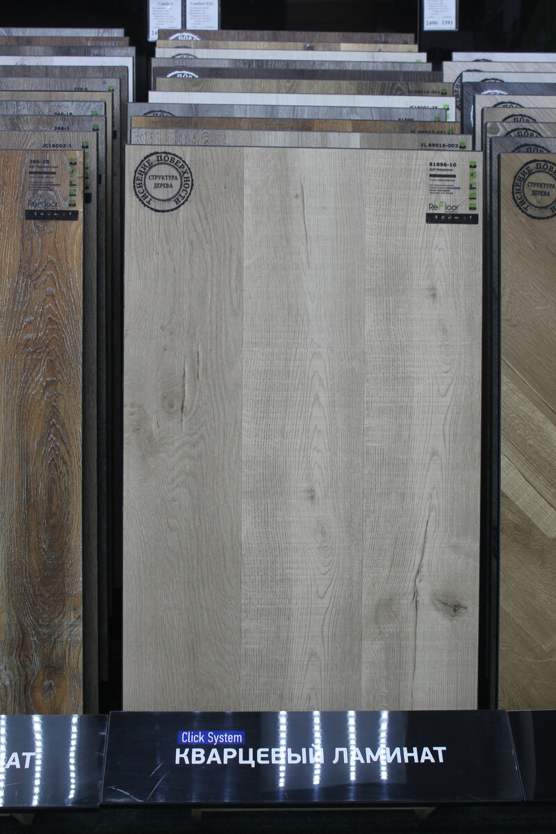 Мне захотелось увидеть кварцевый ламинат вживую, потрогать его и сравнить с привычными вариантами. В магазине меня встретило огромное количество коллекций, в основном имитирующих дерево, которые внешне очень похожи на качественный ламинат.