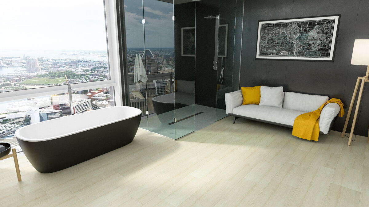 По сути, это современное жесткое напольное покрытие SPC (Stone Polymer Composite), которое соединяется с помощью замков. Оно может имитировать текстуру дерева, обладая при этом прочностью камня и абсолютной устойчивостью к воде и влаге.