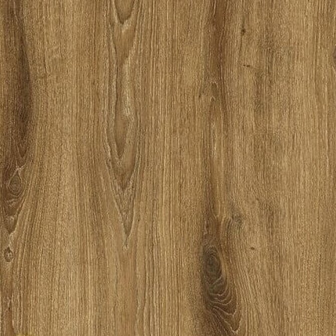 Дизайн ламината точно воспроизводит текстуру натурального лакированного дерева в стиле «Рустикальная» с легким глянцевым блеском защитного слоя, что добавляет интерьеру теплоты и естественности.