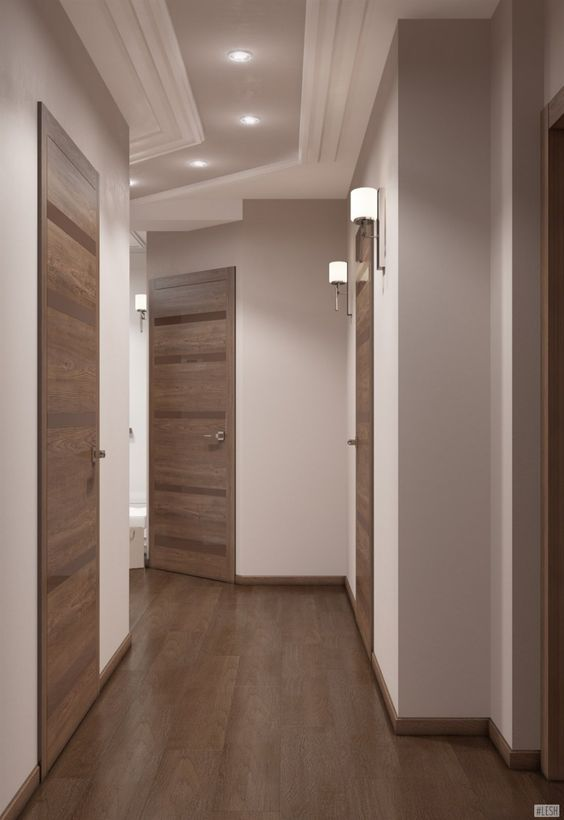 Многие производители межкомнатных дверей выпускают также и плинтуса всех оттенков. - Выбор напольного покрытия происходит уже после выбора плинтусов. Последние тренды в дизайне интерьера предполагают использование ламината контрастного с дверью оттенка. С одной стороны, уже не надо тратить силы на то, чтобы подобрать материалы точно в тон, с другой – даже хорошо подобранные материалы будут немного отличаться по текстуре и давать разное цветовосприятие, с третьей – хочется быть в тренде. Поверхность ламината повторяет разные виды и цвета дерева, имеет разную фактуру, это позволяет создать в помещении бюджетную имитацию пола из ценных пород древесины. Ламинатная доска, имеющая малую ширину и скосы (фаски) по периметру, является наиболее близкой имитацией пола из массива.