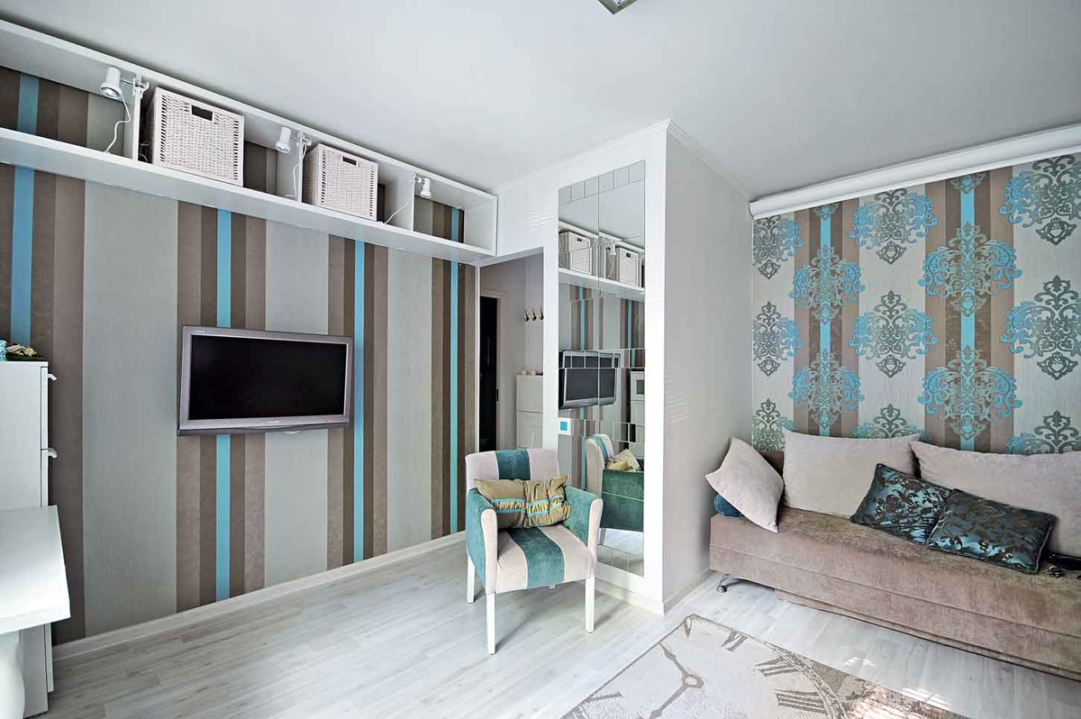 Чтобы стены не выглядели плоскими и скучными, используйте обои с выраженной фактурой или тиснением. Игра света и тени на рельефной поверхности добавляет стенам объёма, делает интерьер более динамичным и интересным, отвлекая внимание от скромных размеров комнаты.