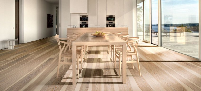 Для кухни следует выбирать паркетную доску из пород дерева, обладающих повышенной устойчивостью к влаге.