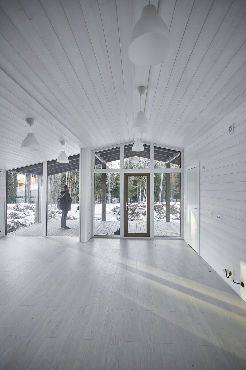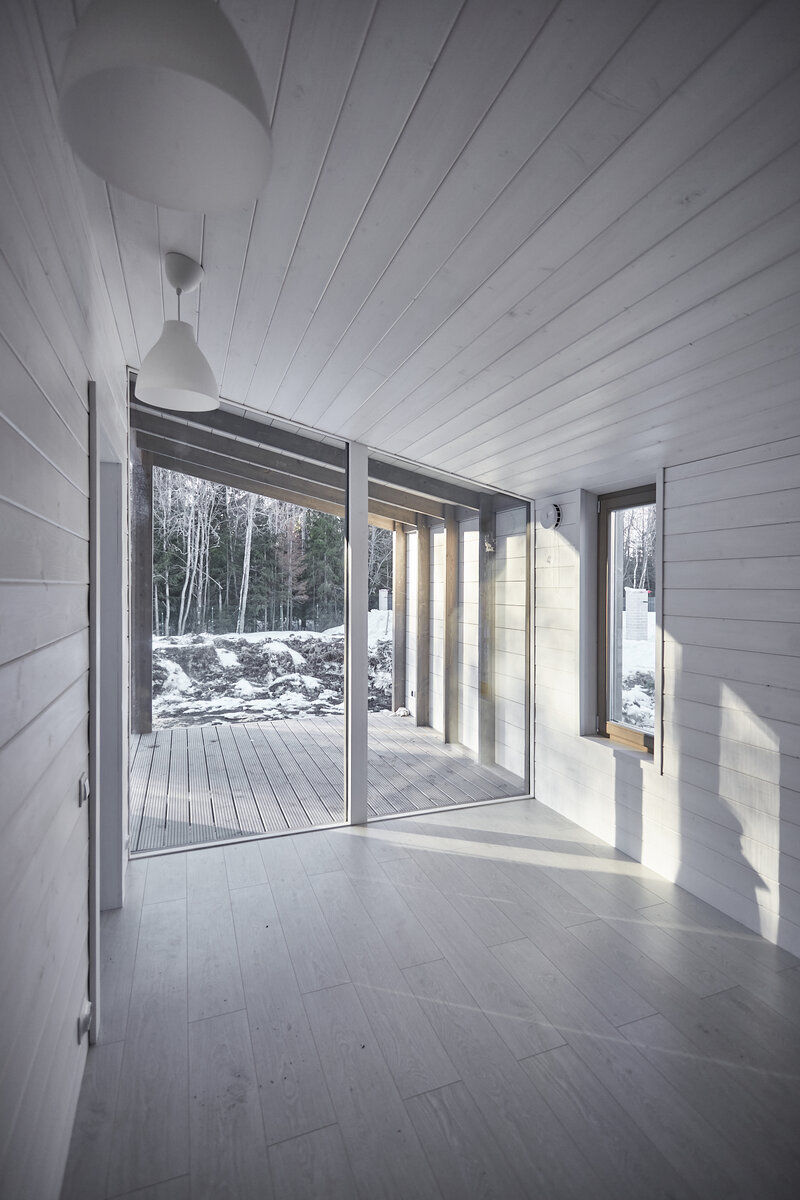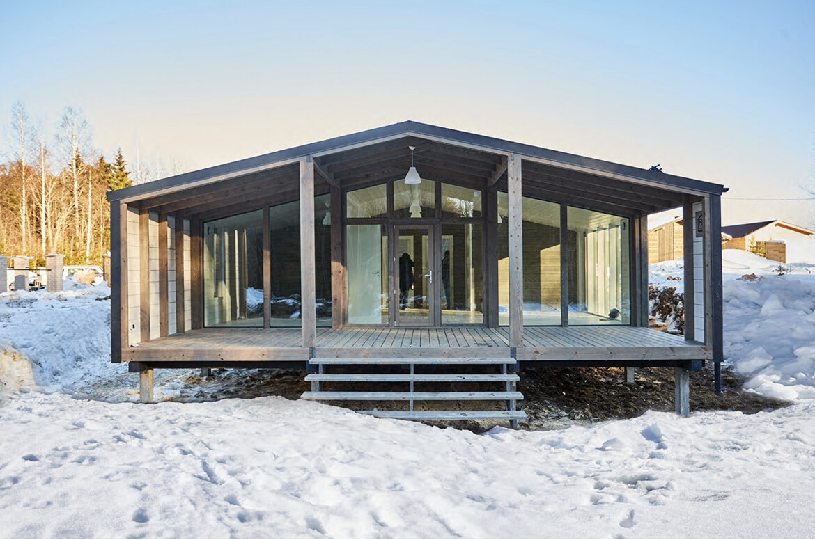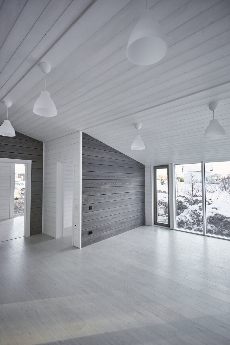 - Внешняя отделка со стороны деревянного фасада выполнена из крашеной доски UYS профиля
