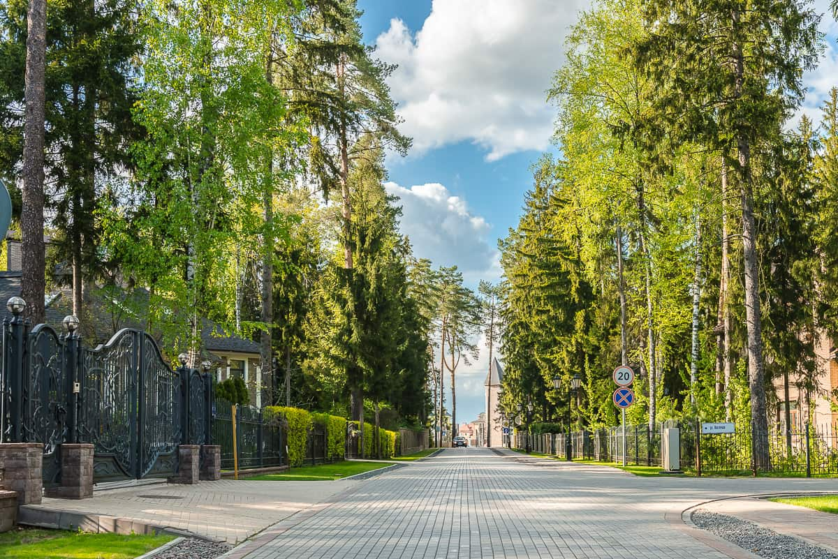 На территории Новой Риги расположен уникальный поселок, где коттеджи построены между сосен, растущих там веками. Целебные свойства хвойного леса, приятный запах деревьев и смолы окружают жителей местных особняков и коттеджей. Композиция населенного пункта выдержана в трех органичных архитектурных стилях – конструктивизм, классицизм и ампир.