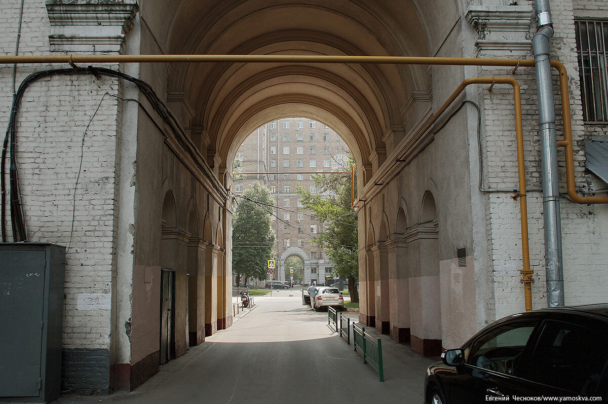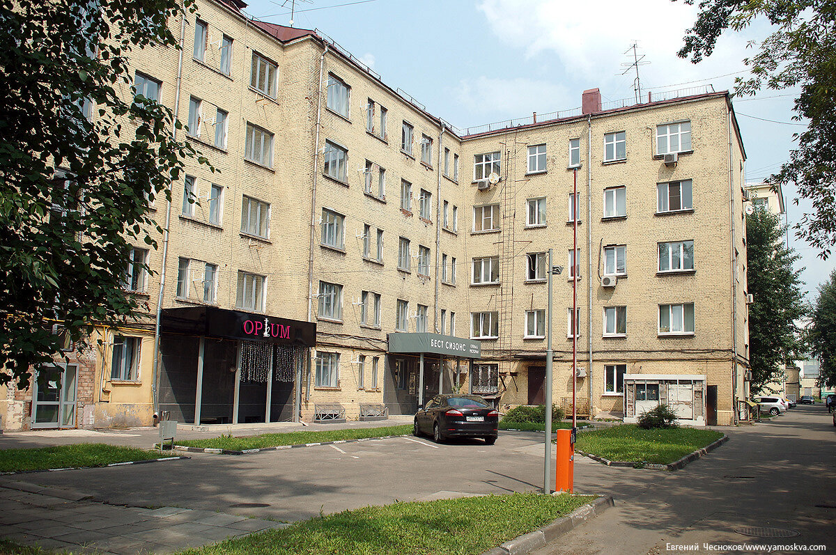 Дальше улица сворачивает направо, оставляя чуть в стороне жилой массив 1929-1930-х годов, построенный для рабочих автомобильного завода.