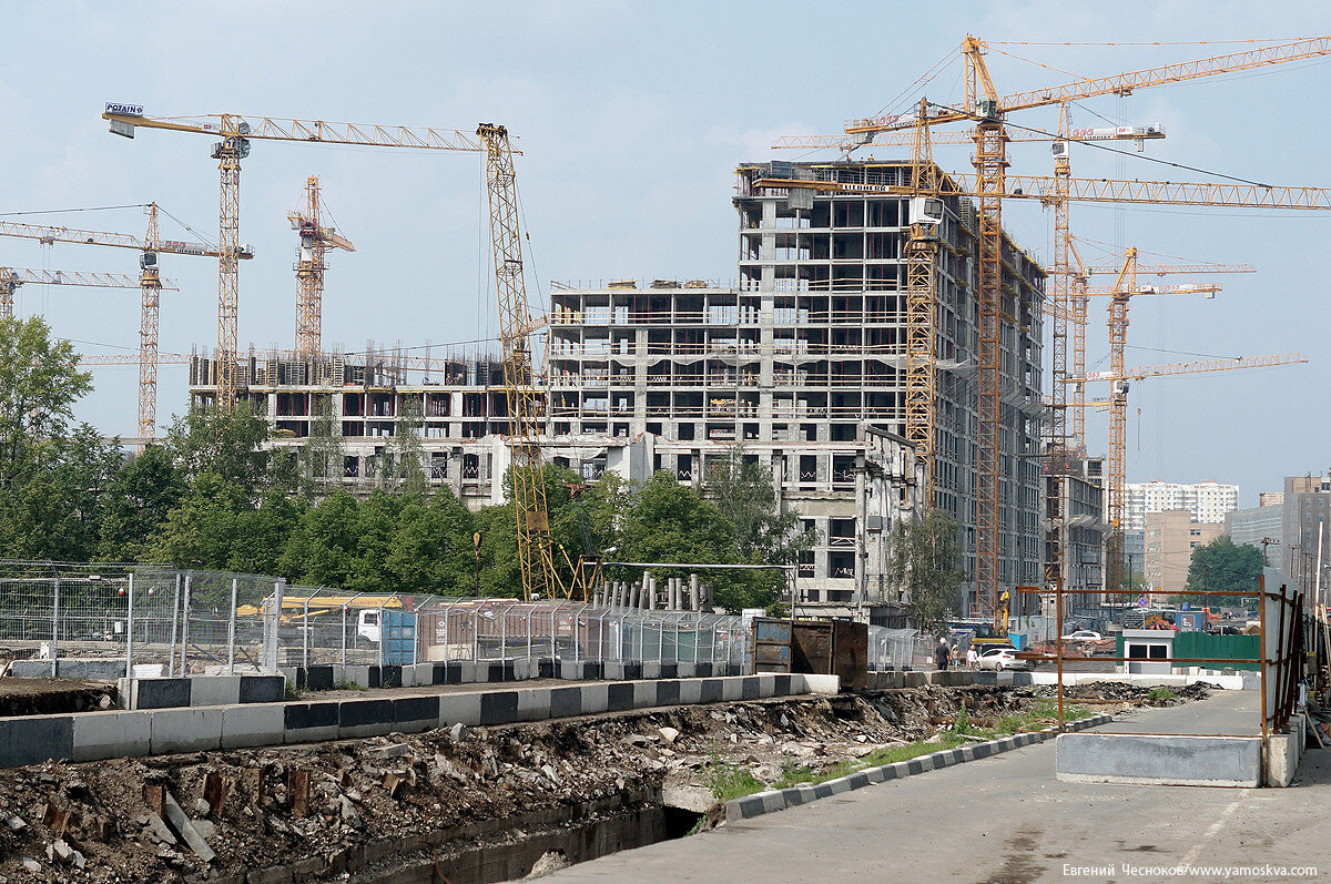 Вдали десятки башенных кранов колдуют над сотами будущего жилого комплекса ЗИЛАРТ.