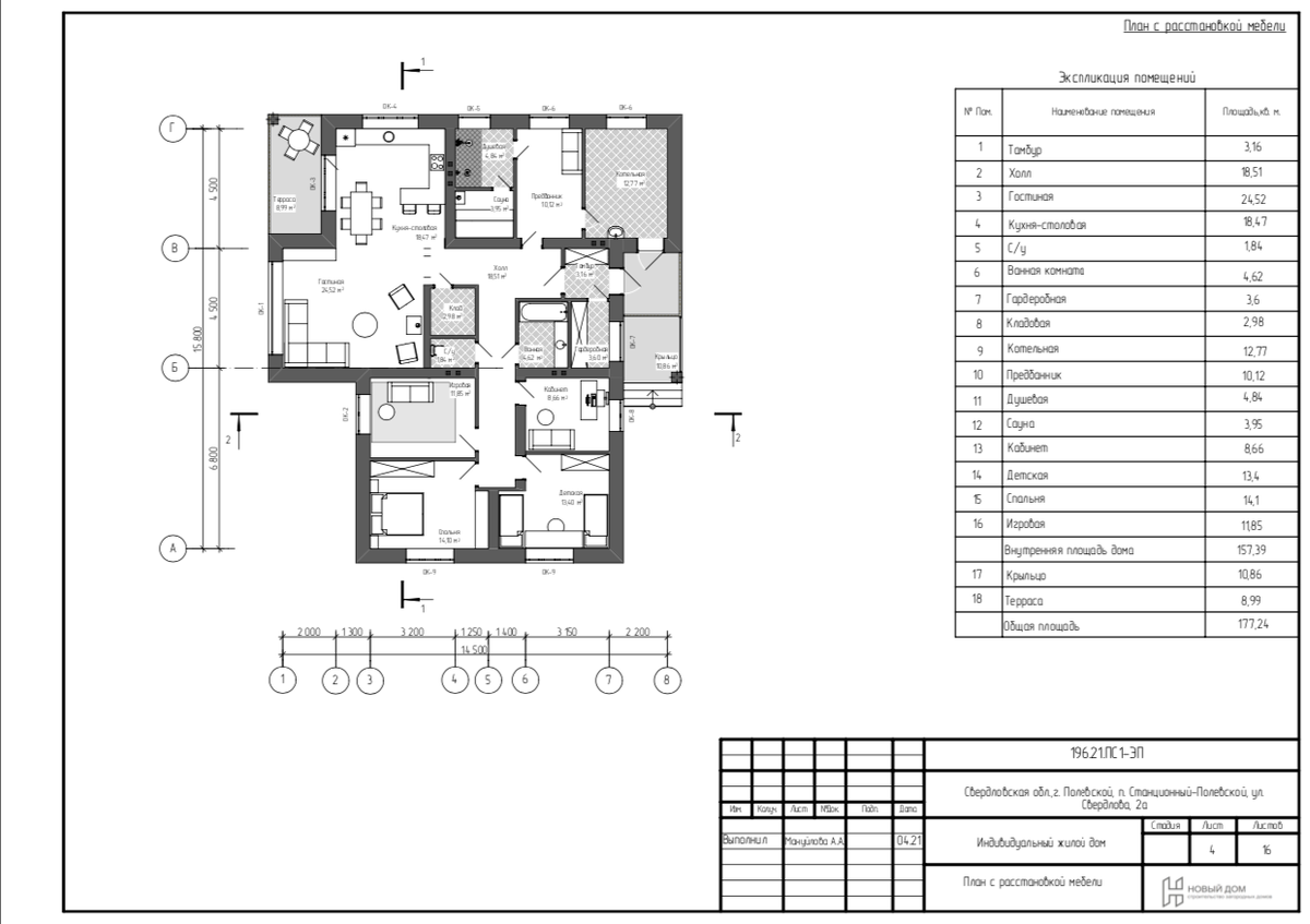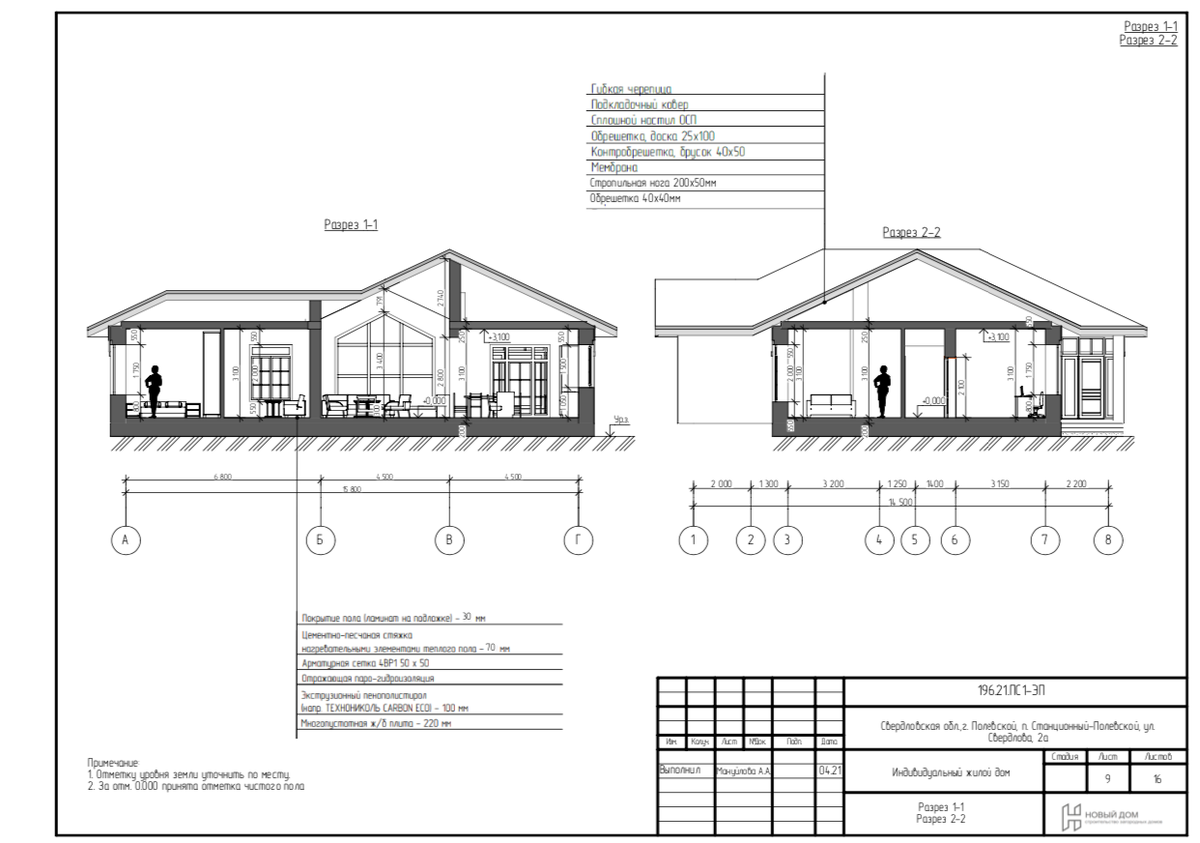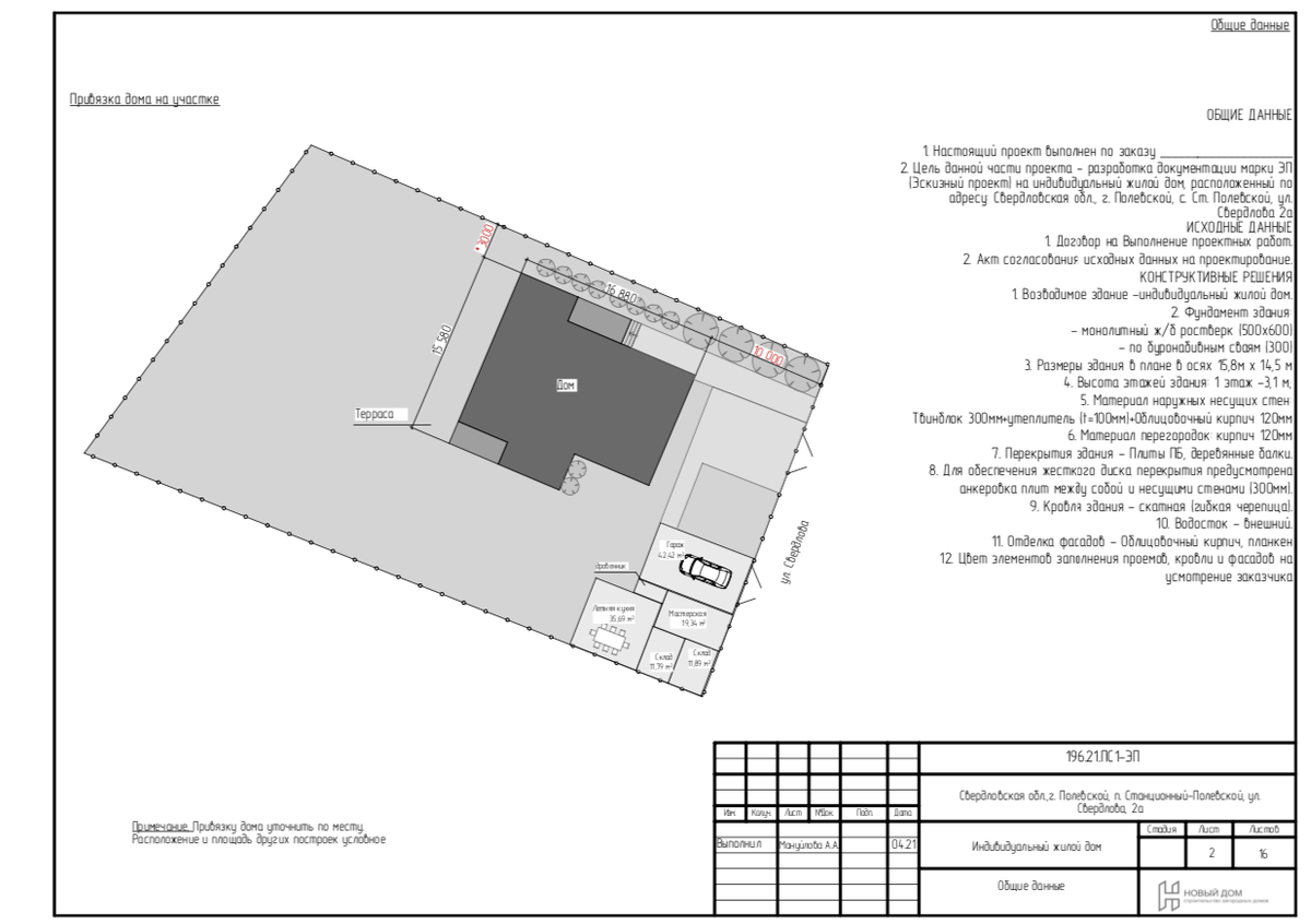 Разработанный с соблюдением всех требований проект позволит Вам без проблем произвести ввод Вашего будущего дома в эксплуатацию.Какой должен быть минимальный состав Эскизного проекта? Рассмотрим на примере проекта для одноэтажного дома, который мы разработали в 2021 году. Перед началом работы проектировщиков с Заказчиком согласовывается тип основных кладочных материалов (кирпич, твинблок или другое), материалы перекрытий, высоты этажей и так далее.