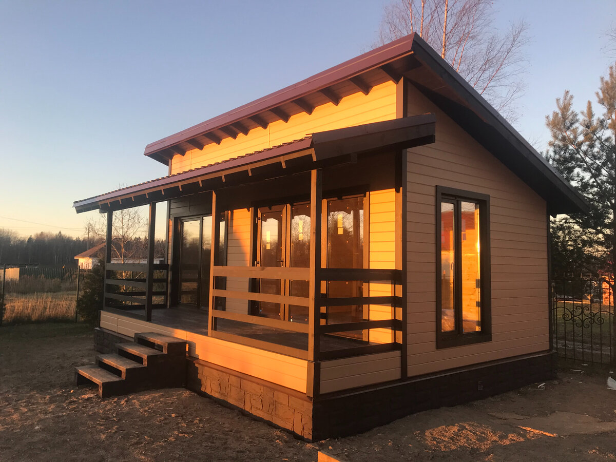 - Дом 8х8 в стиле Хай-Тек для постоянного проживания. Строим из газобетона и по каркасной технологии под ключ.