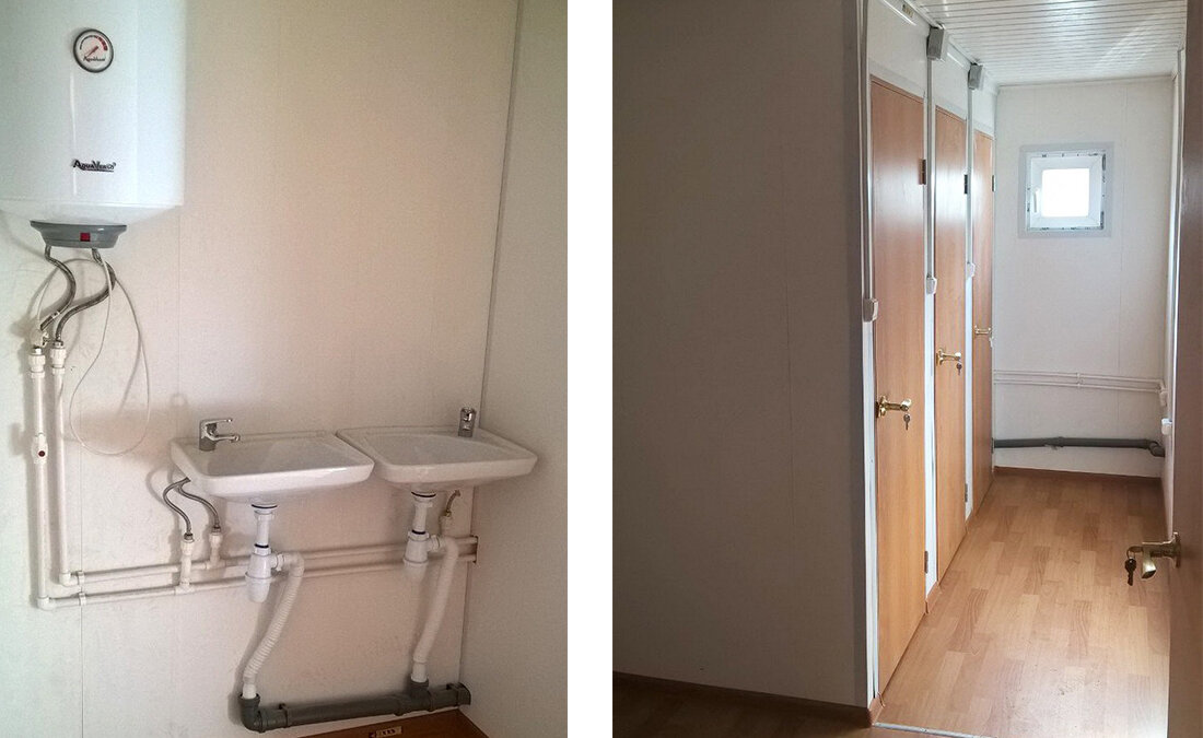 - Ничего особенного: кухня, санитарная комната, спальни, электричество. Но есть нюансы. Представьте, что строительная площадка каждый раз в другом месте, часто труднодоступном. Развозить бригады туда-обратно сотни километров по пробкам каждый день, это десятки человеко-часов и литры ГСМ! А каждая стройка, помимо прочего, имеет сроки, обычно довольно сжатые. Что имеем: