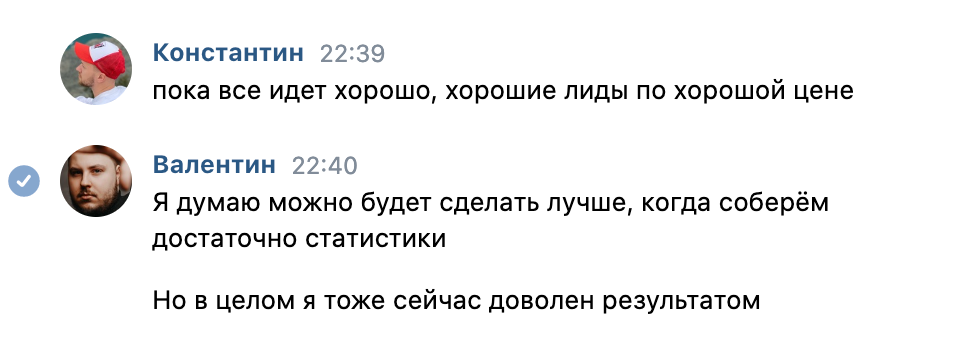 У Заказчика были вопросы и сомнения относительно результата, так как до этого уже пытались сделать рекламу в vk, но потратили 10 000 рублей без результата, поэтому с командой решили ему одному из первых сделать такое предложение: 30 заявок с оплатой только за рекламный бюджет.