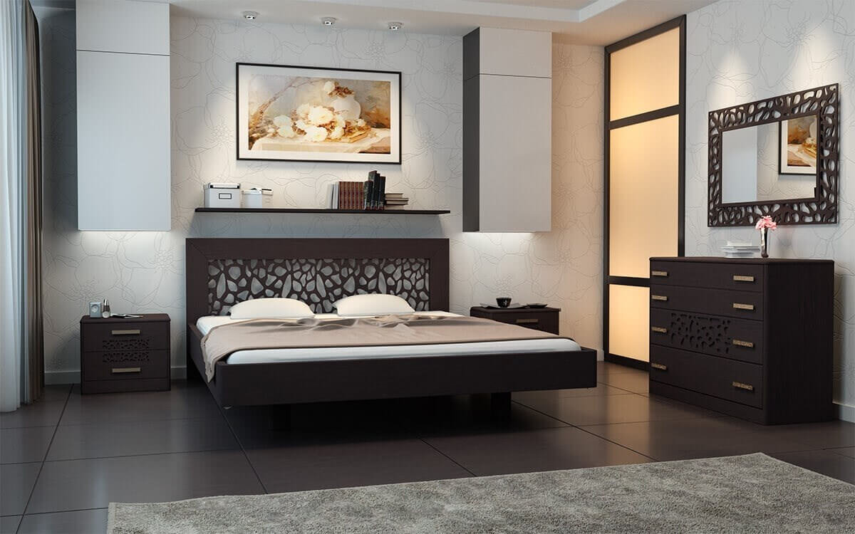 - Широкий выбор декоров — ламинат может имитировать любые породы дерева, что позволяет легко вписать кровать в интерьер;