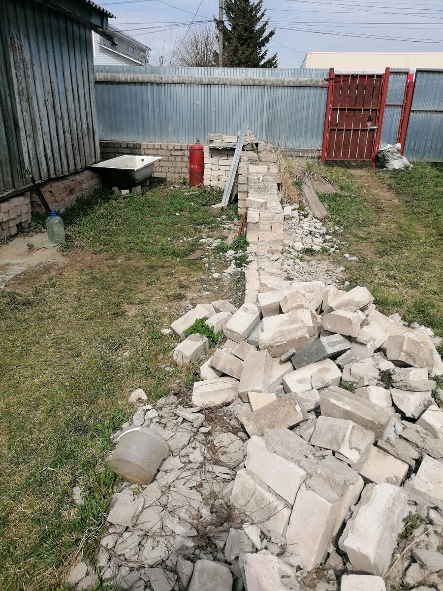 И прежде чем выравнивать, нужно окончательно очистить территорию. Если те же ветки и другой мусор я могла убирать самостоятельно, то двор ломать уже нужна мужская сила. Помимо двора ещё будет снос старой пристройки.