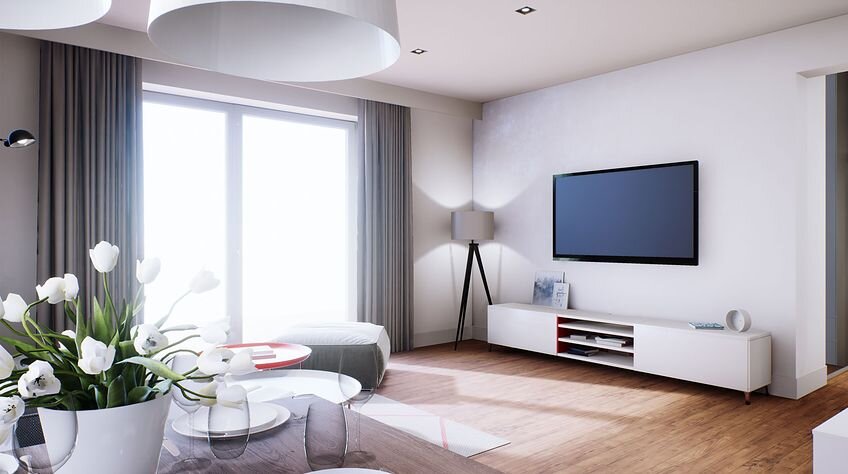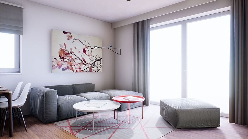 В Нижнем Новгороде цена за 1м2 в новостройках достигает 100 тыс рублей. Постройка такого дома с предчистовой внутренней отделкой обойдётся вам до 4-х млн рублей.Дизайн интерьеров не является продолжением архитектурного стиля. Дизайн явно нейтрален и выполнен с элементами минимализма. Ярким пятном в обилии белого красные кухонные фасады, но опять в сочетании с белым. Обратите внимание на полы кухни. Полистайте визуализацию интерьеров ниже.