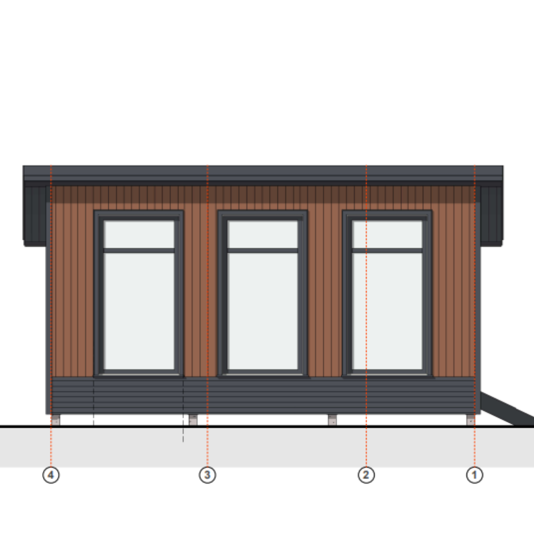 В качестве отделки заказчики выбрали ярко - оранжевую, вертикальную доску в сочетании с горизонтальной серой, окна так же будут серого цвета. Задний фасад, в продолжение крыши, закроем серым матовым профлистом.