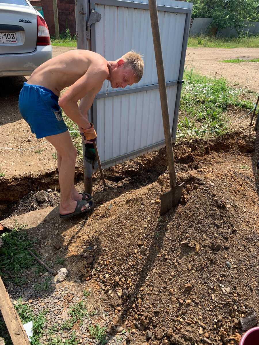 Первый этап- это выкопать траншею под фундамент. Муж приступил.