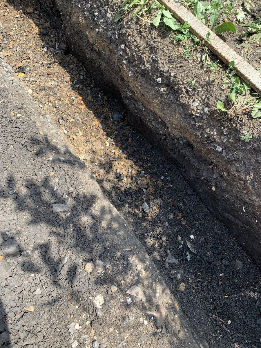 Решил оставить траншею 40 сантиметров. Потому что живем на склоне нашего населенного пункта. Земля промерзает не глубоко, воды нет.
