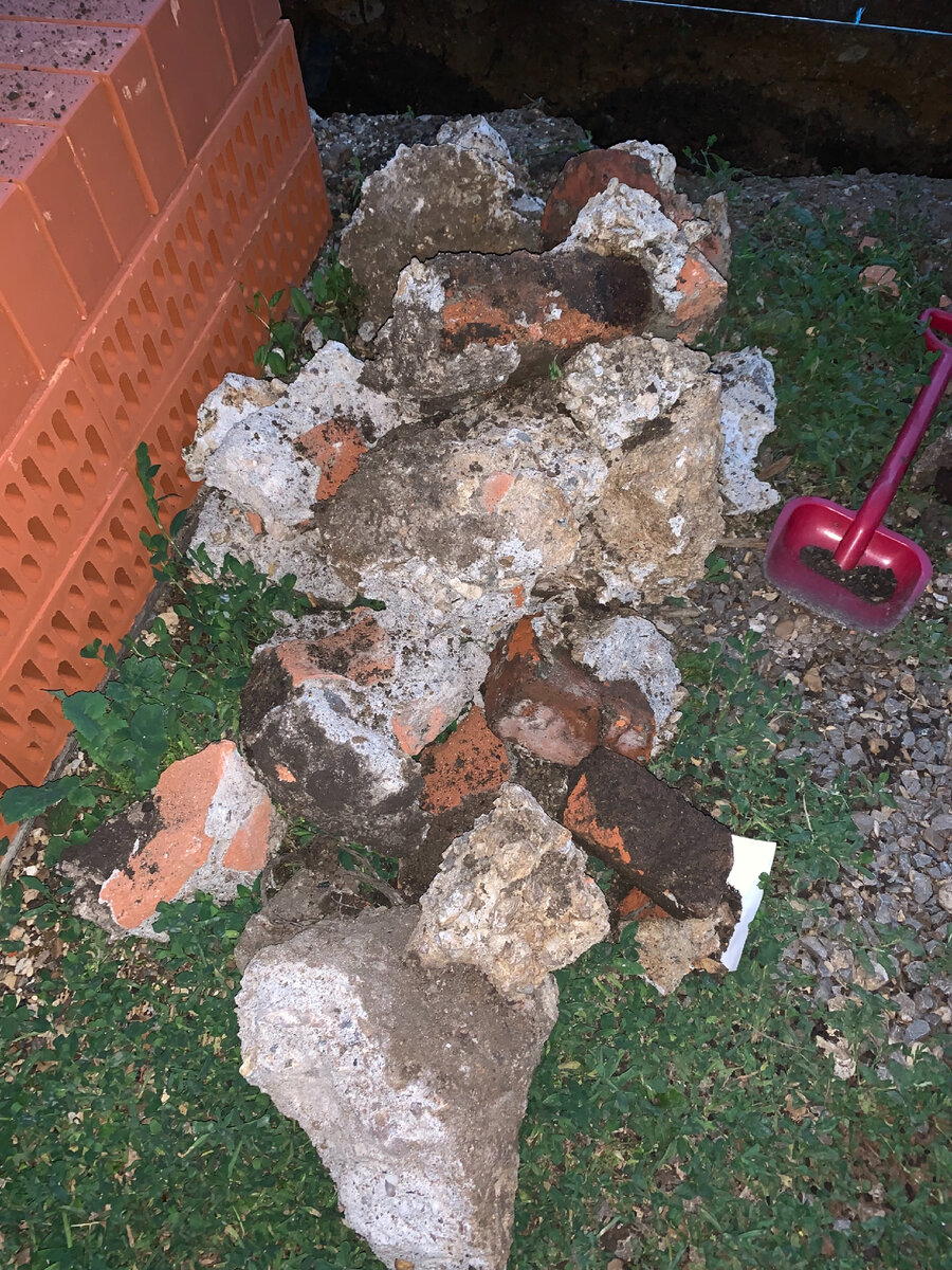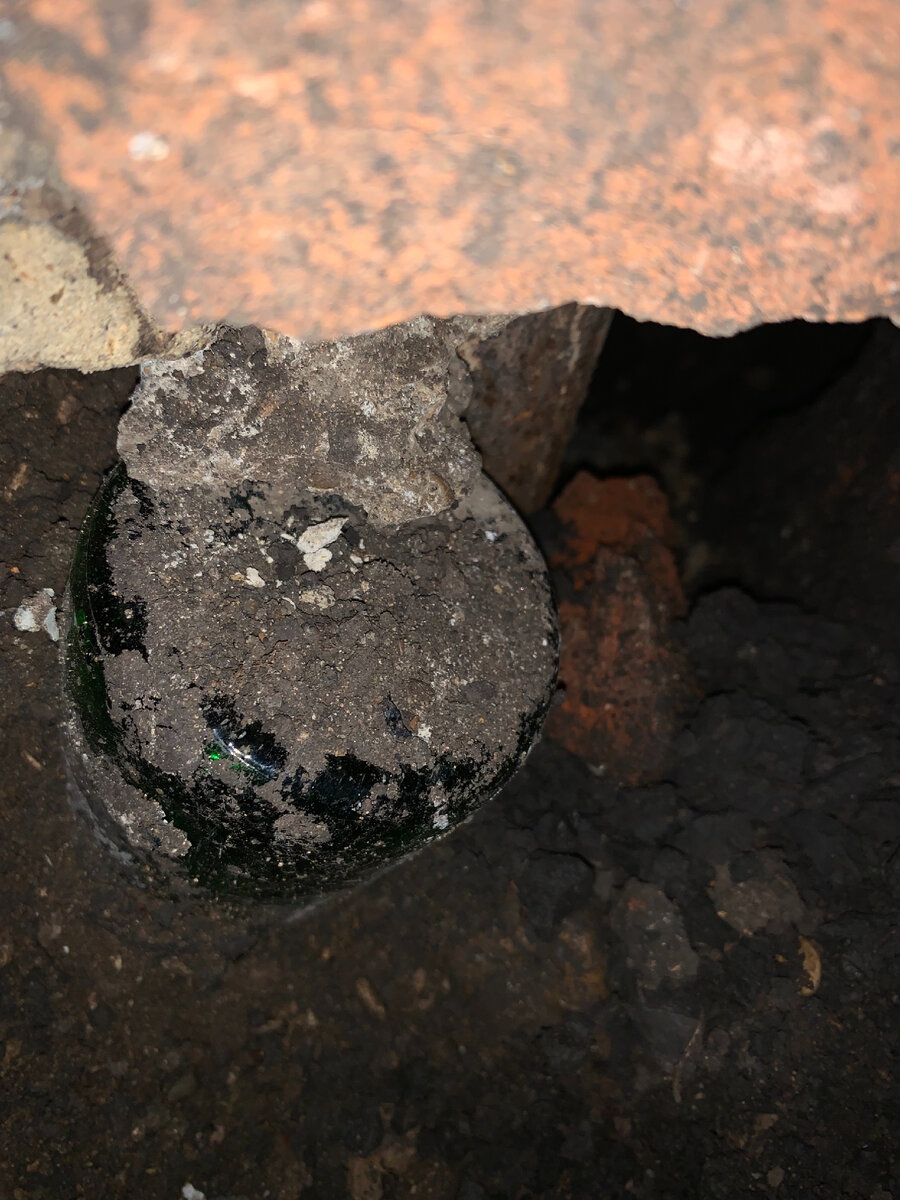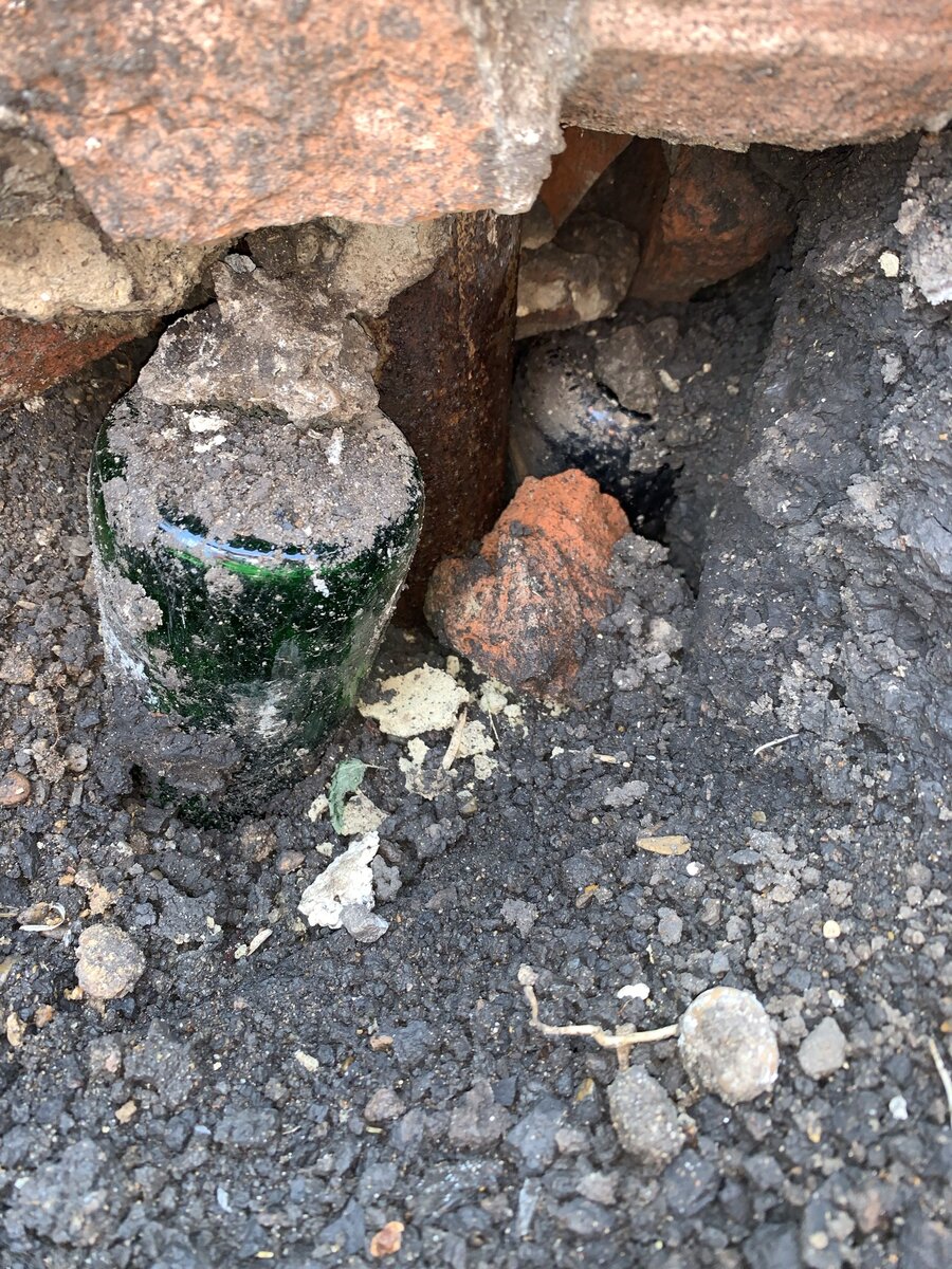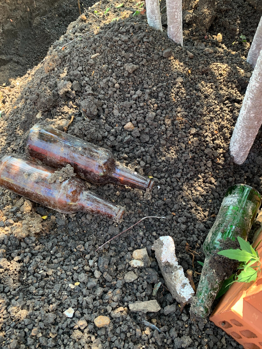 При строительстве забора обнаружили, что столбы установлены на фундаменте из пустых стеклянных бутылок, кирпичей и цемента.