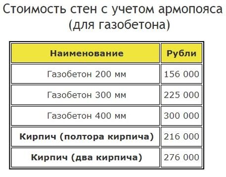 По этой итоговой таблице видно, что самые толстые газобетонные стены обойдутся домовладельцу в 300 тысяч рублей, а самые толстые кирпичные - в 276 тысяч.