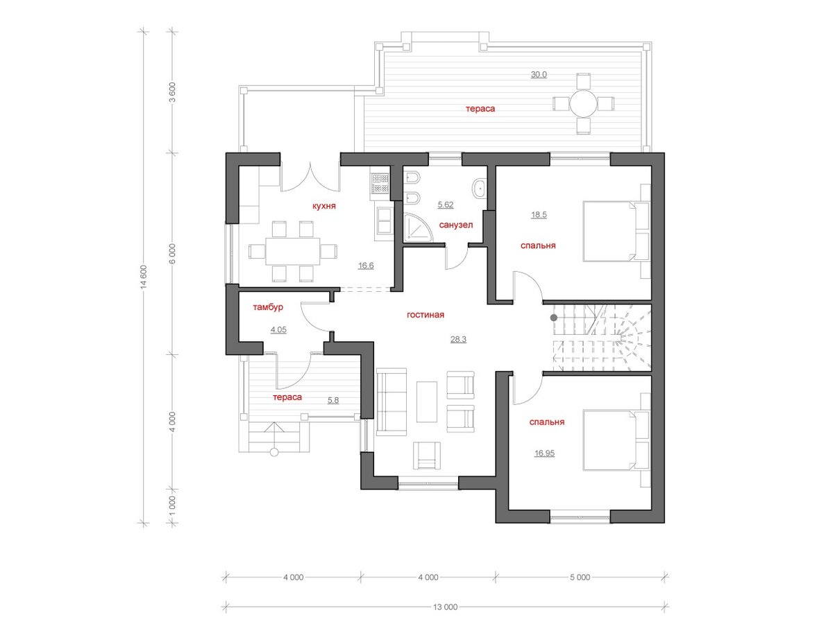 Семья из 6-10 человек по достоинству оценит внутреннее пространство: в этом коттедже предусмотрено 5 больших и светлых спален и два санузла, гарантирующих комфортное проживание каждому домочадцу. Кухня, гостиная и терраса создают все условия для полноценного отдыха в кругу семьи и друзей.